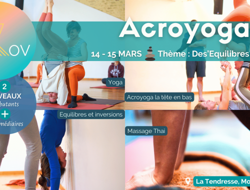 14-15 MARS : Acroyoga Des'Equilibres Un autre week-end métisse, mélangeant les pratiques corporelles qui nous emmènent la tête en bas : yoga, acroyoga, équilibres sur les mains,… On y aborde...Lire plus